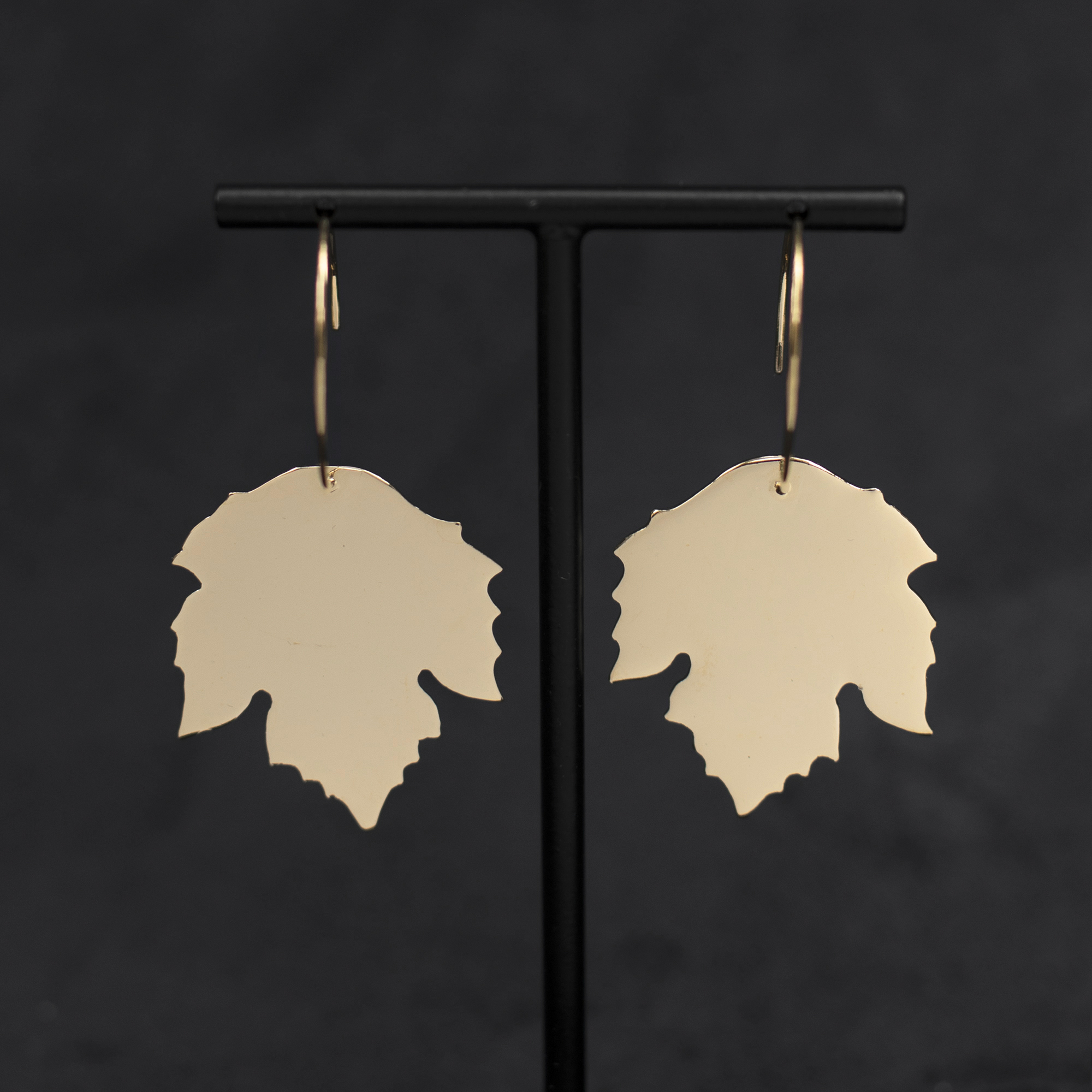 matériaux : créoles en argent 925, feuille de vigne en laiton, le tout doré à l’or fin, finition brillante